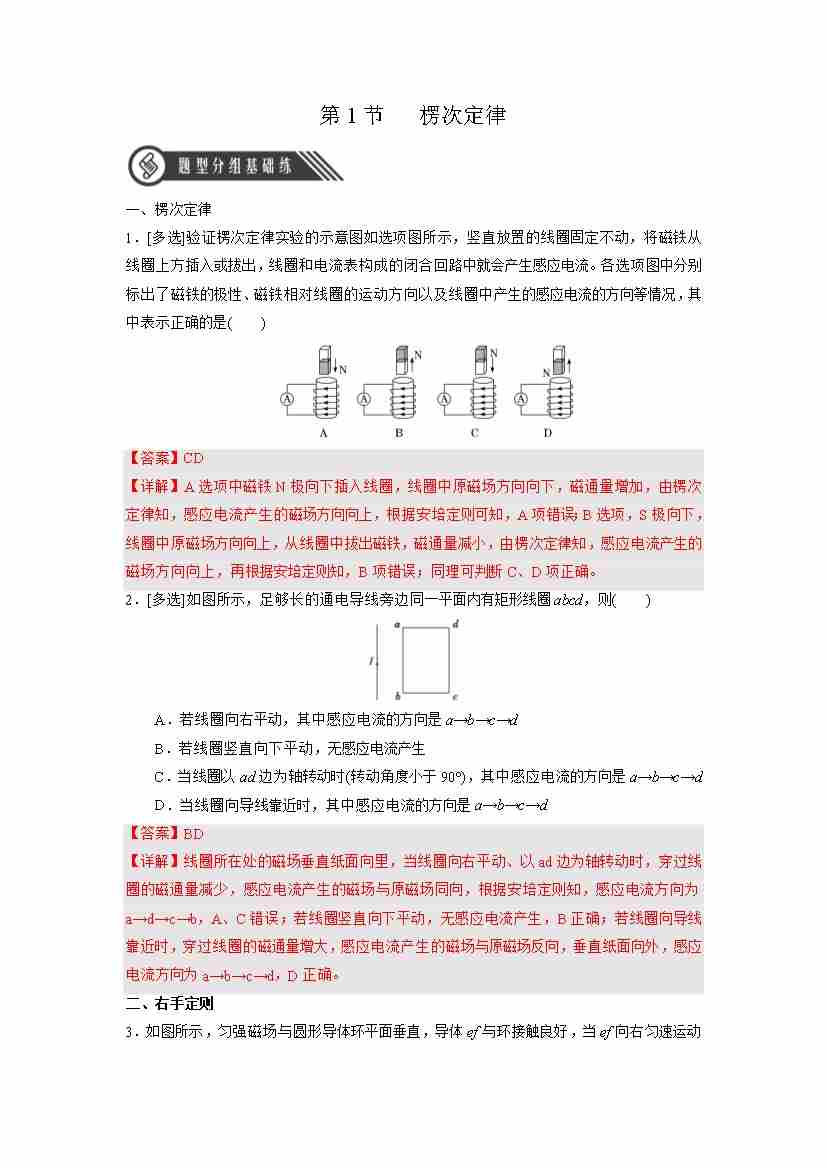 2.1 楞次定律(分层作业)(解析版)-(人教版2019选择性必修第二册)
