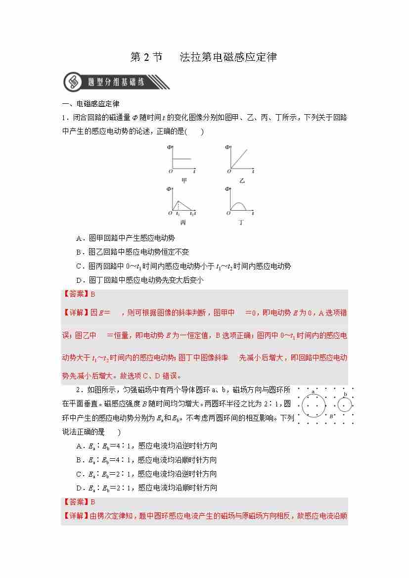 2.2 法拉第电磁感应定律(分层作业)(解析版)-(人教版2019选择性必修第二册)