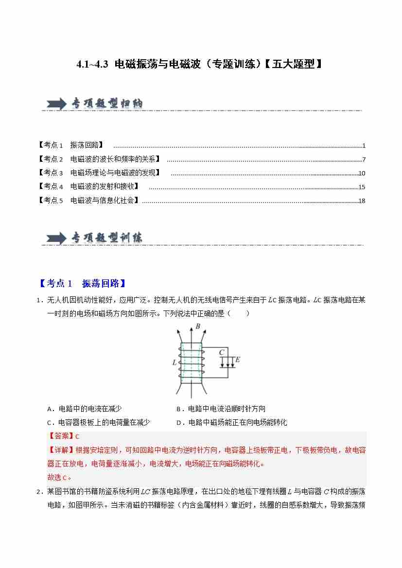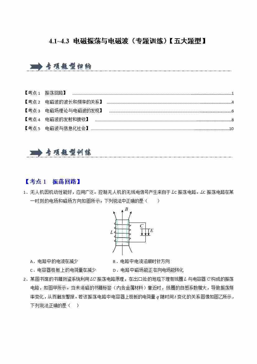 4.1~4.3 电磁振荡与电磁波(专题训练)(五大题型)(教师版)