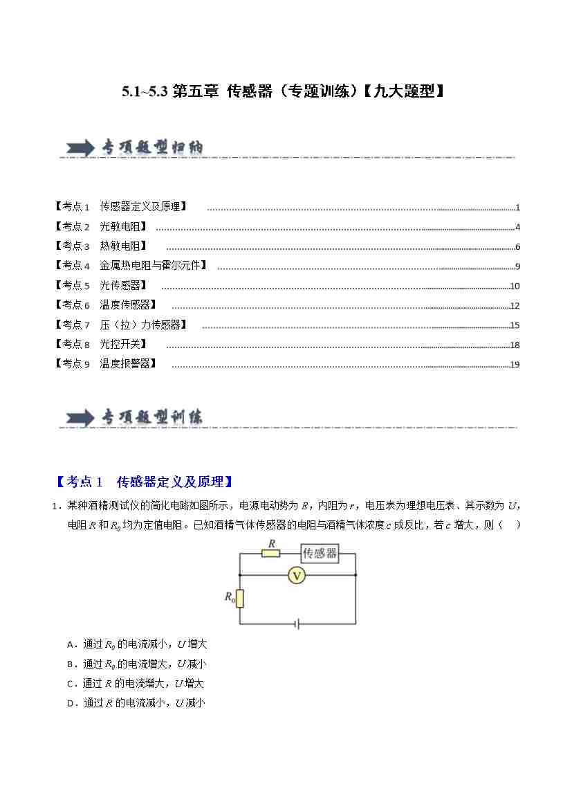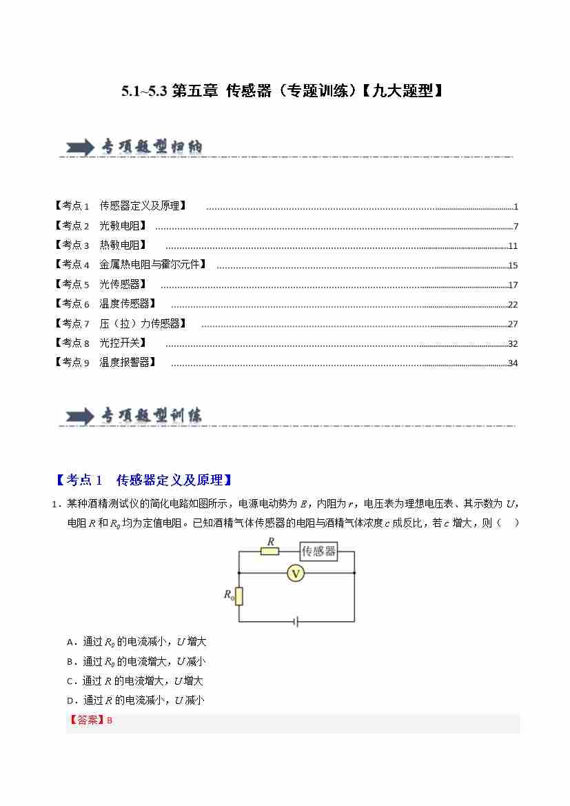 5.1~5.3第五章 传感器(专题训练)(九大题型)(学生版)