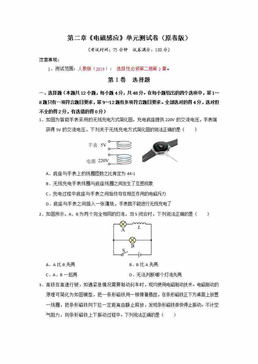 第2章《电磁感应》单元测试卷(学生版)
