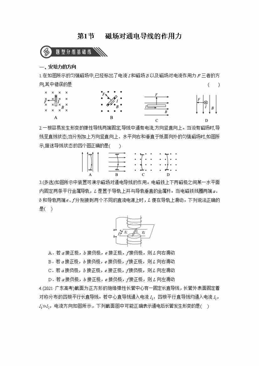 1.1 磁场对通电导线的作用力(分层作业)(原卷版)