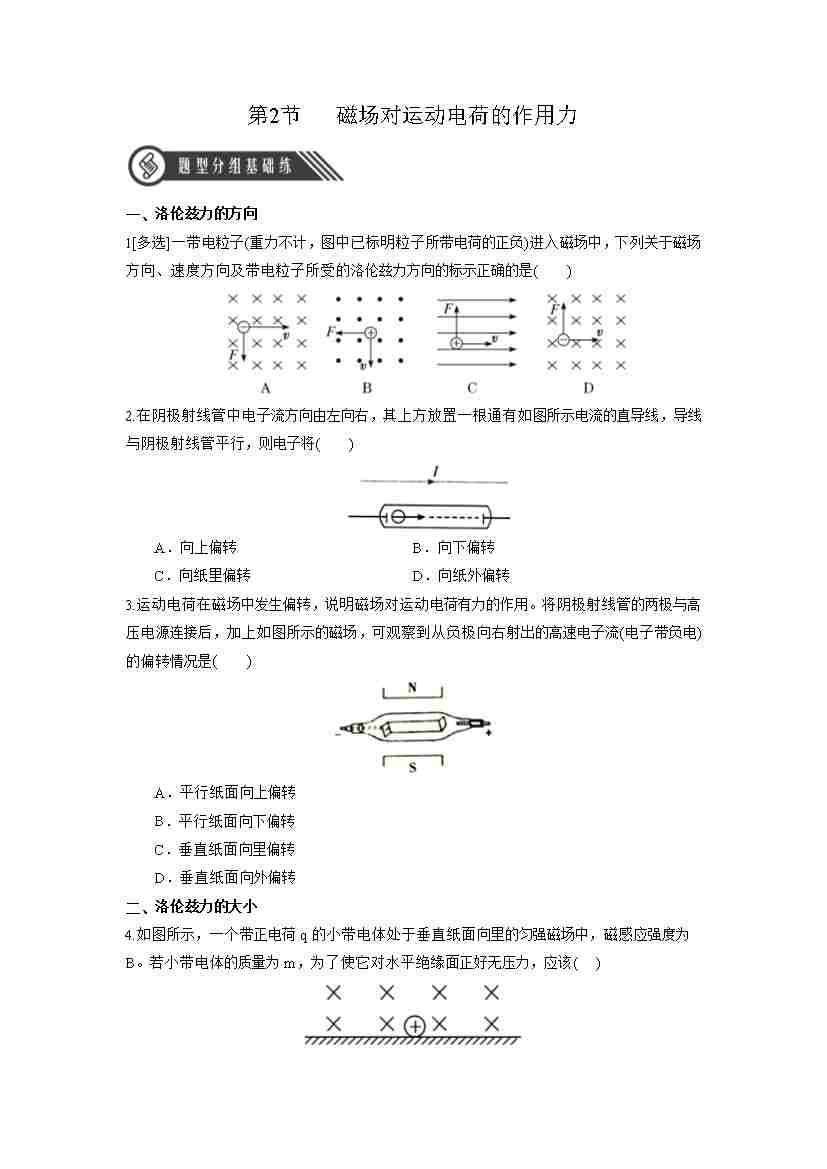 1.2 磁场对运动电荷的作用力(分层作业)(原卷版)