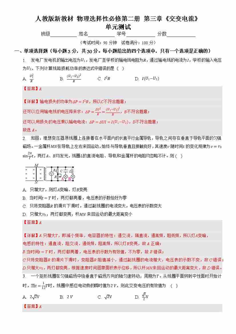 第三章 交变电流(单元测试)(解析版)