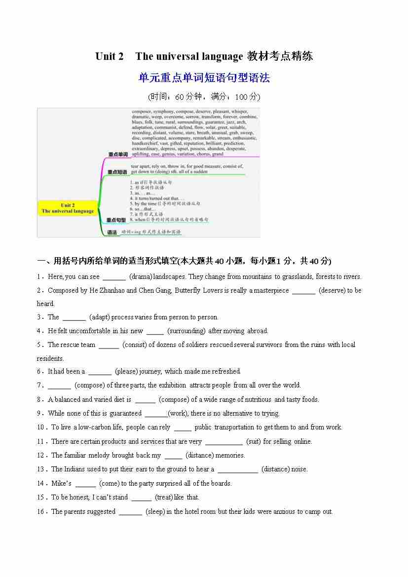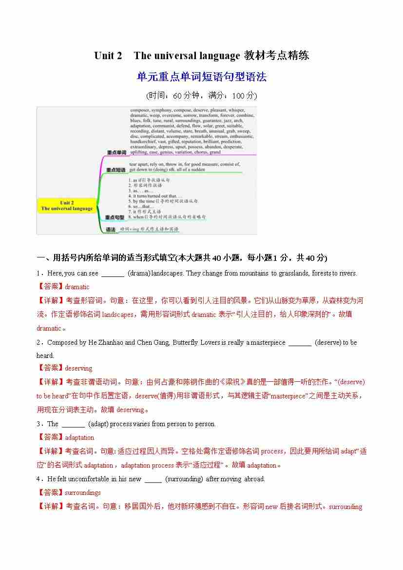 Unit 2 The universal language l 单词短语句型语法(教材考点精练)(教师版)