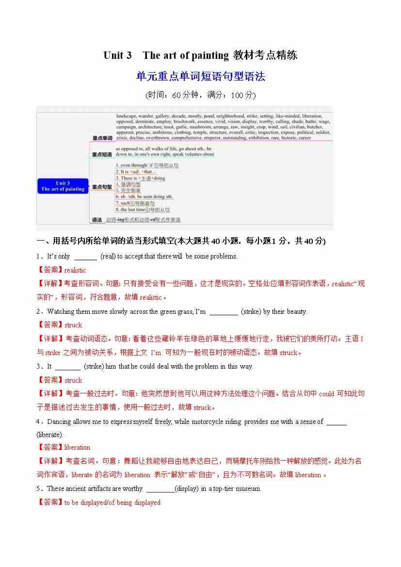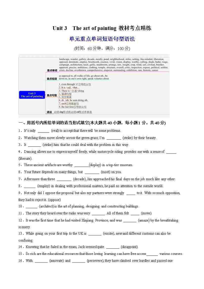 Unit 3 The art of painting l 单词短语句型语法(教材考点精练)(教师版)