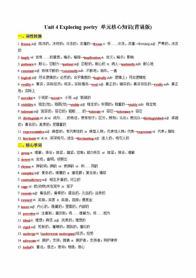 Unit 4 Exploring poetry (单元核心知识)(背诵版)