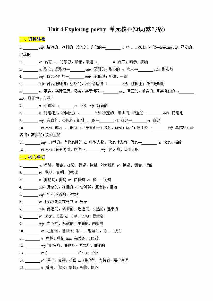 Unit 4 Exploring poetry (单元核心知识)(默写版)