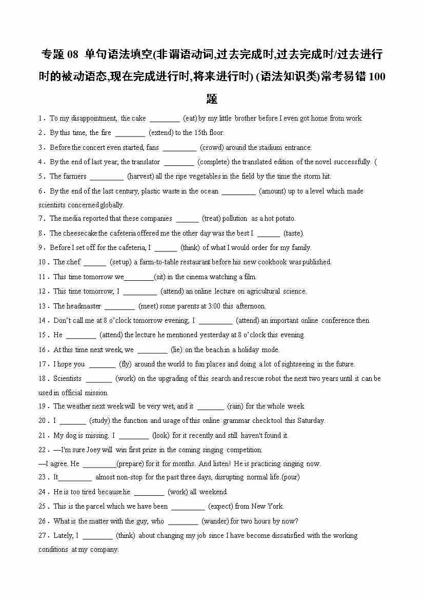 考前押题08 单句语法填空(语法知识类)常考易错100题(期末复习专项训练)(原卷版