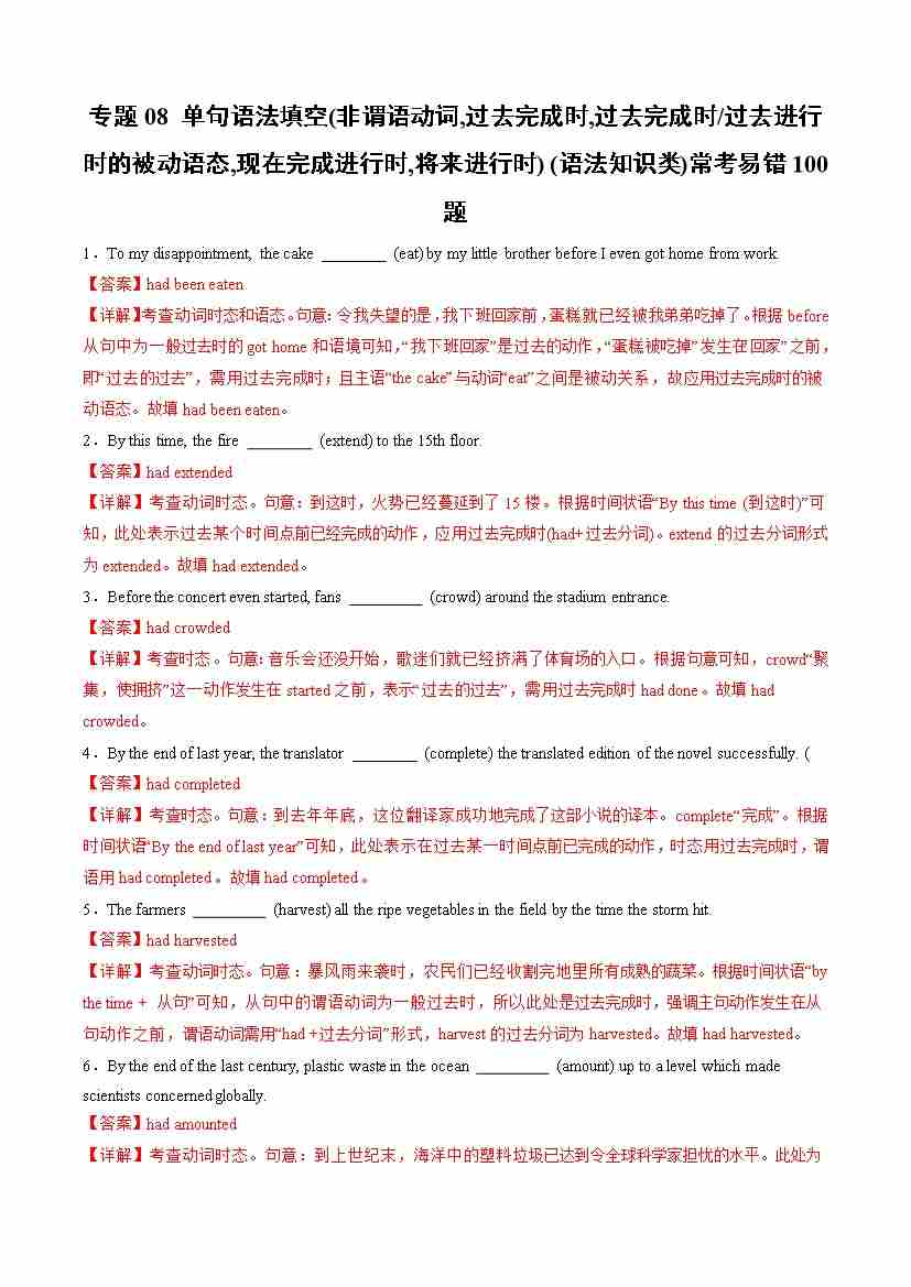 考前押题08 单句语法填空(语法知识类)常考易错100题(期末复习专项训练)(解析版