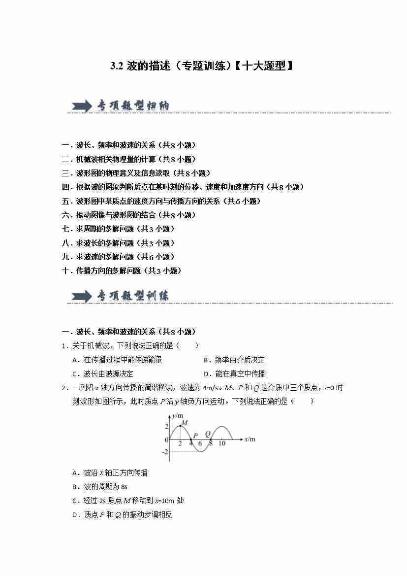 3.2波的描述(专题训练)(十大题型)(学生版)