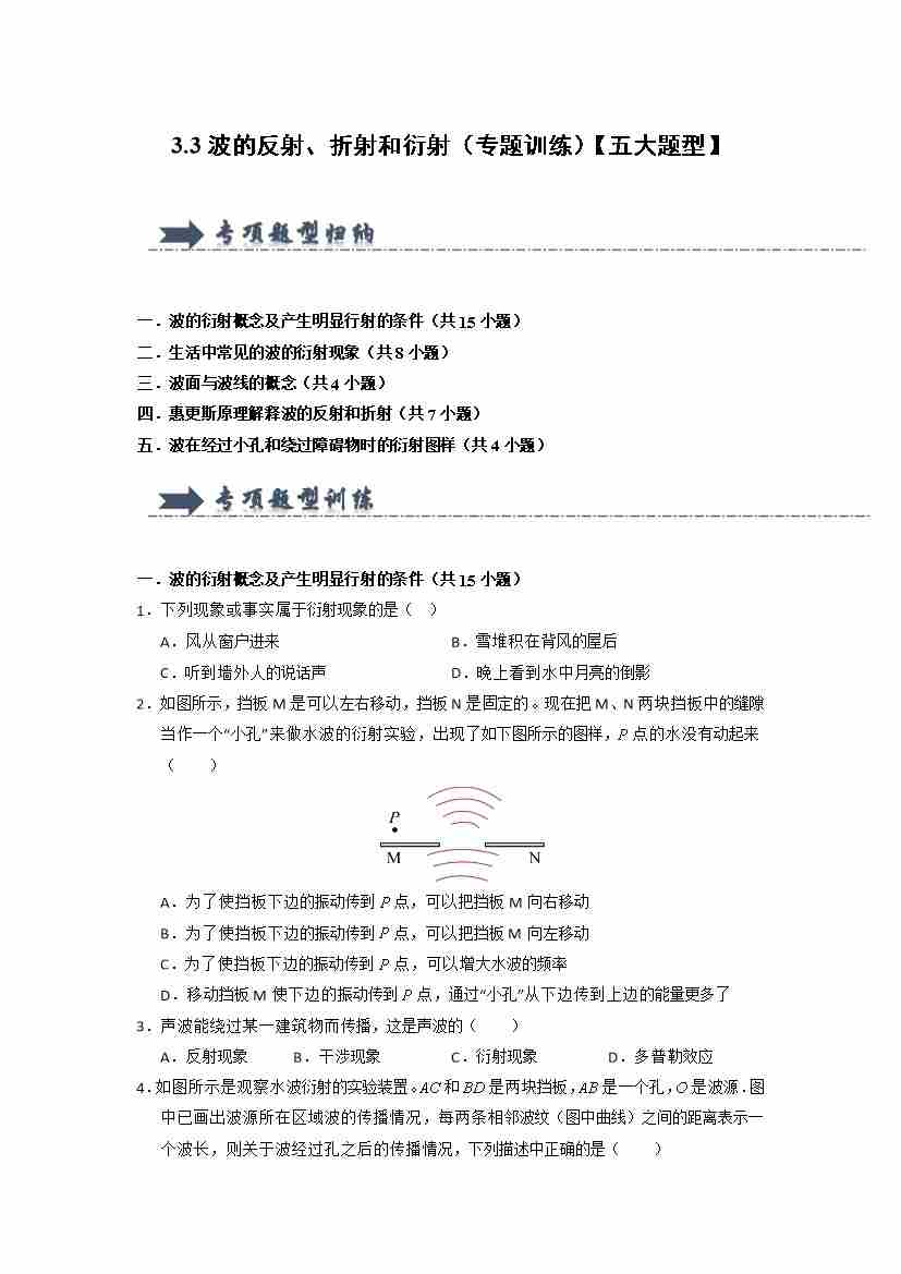 3.3波的反射、折射和衍射(专题训练)(五大题型)(学生版)
