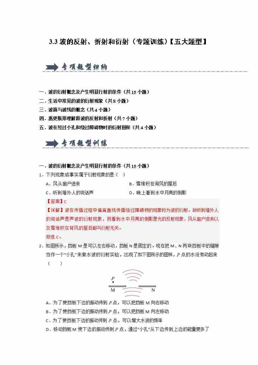 3.3波的反射、折射和衍射(专题训练)(五大题型)(教师版)