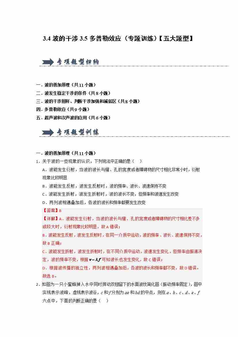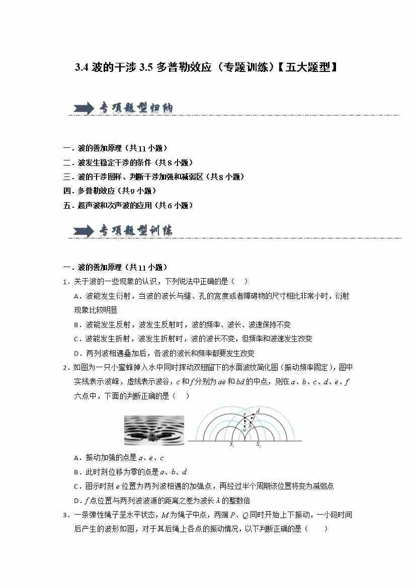 3.4波的干涉3.5多普勒效应(专题训练)(五大题型)(教师版)