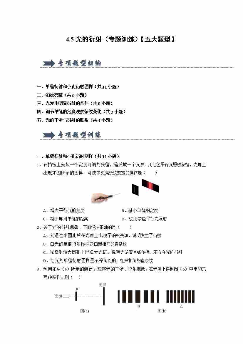4.5光的衍射(专题训练)(五大题型)(学生版)