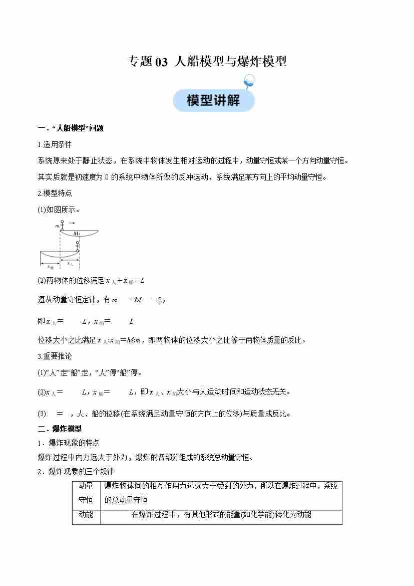 专题03 人船模型与爆炸模型(学生版)