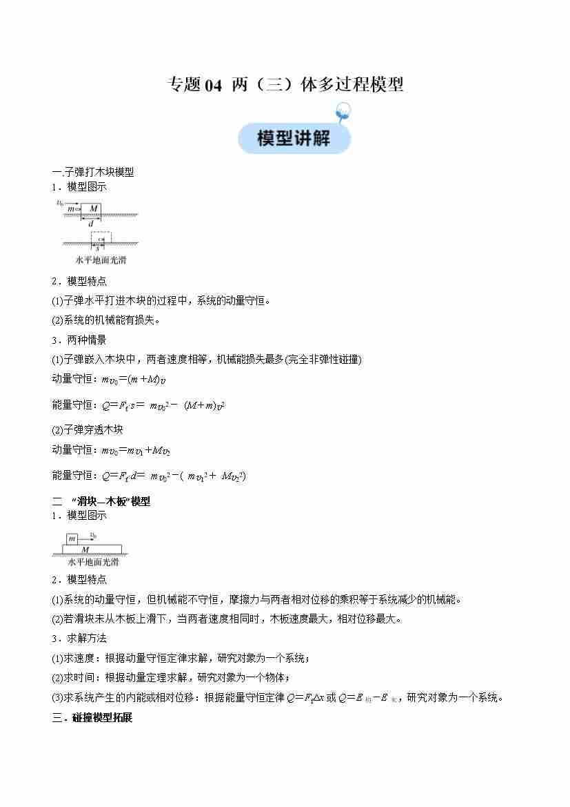 专题04 两(三)体多过程模型(学生版)