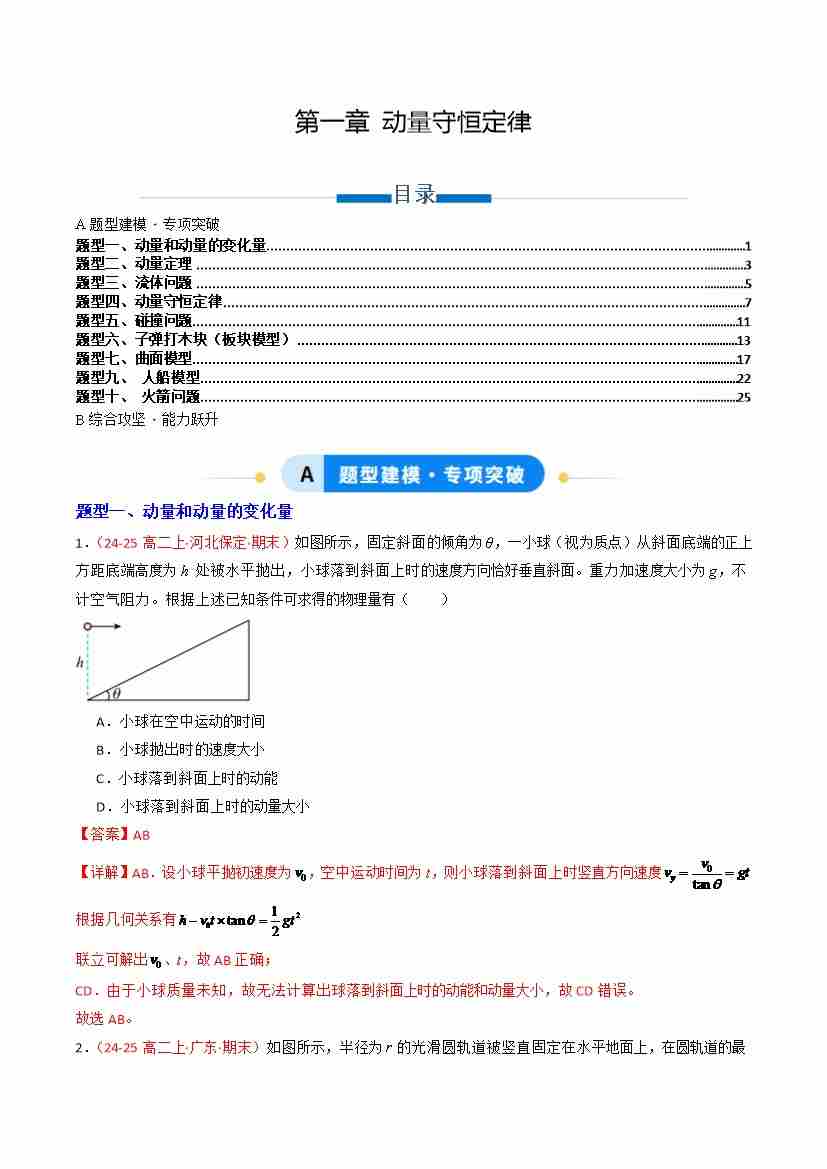 第一章 动量守恒定律(专项训练)(教师版)