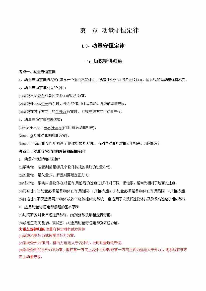 1.3 动量守恒定律-(选择性必修第一册)