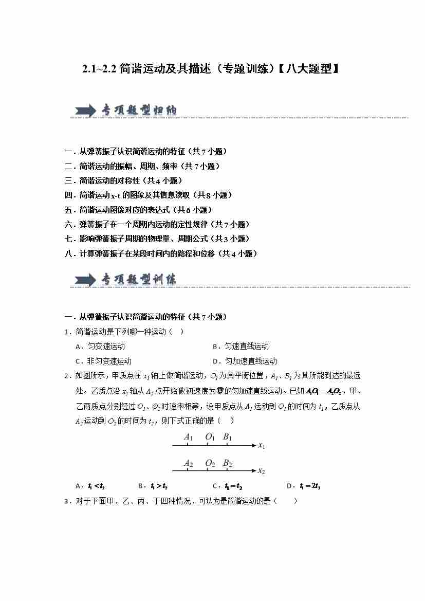 2.1~2.2简谐运动及其描述(专题训练)(八大题型) (学生版)