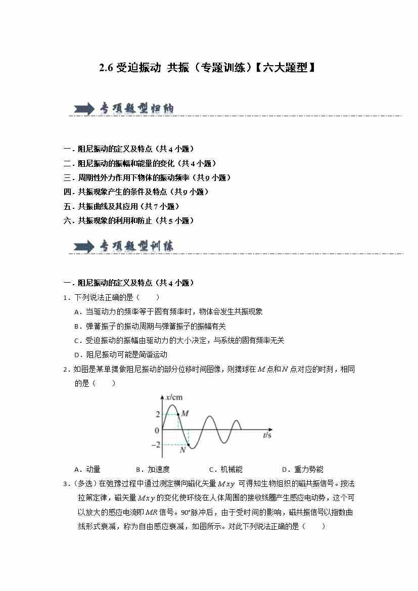 2.6受迫振动 共振(专题训练)(六大题型)(学生版)