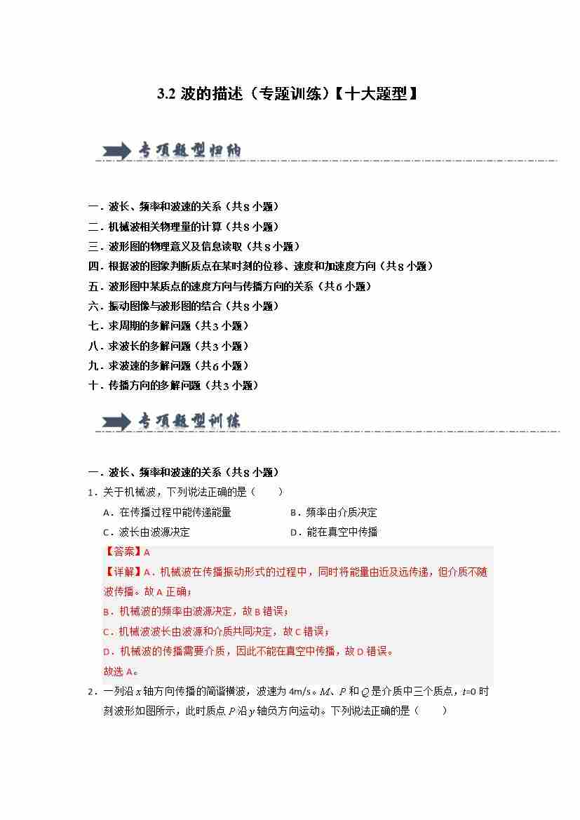 3.2波的描述(专题训练)(十大题型)(教师版)