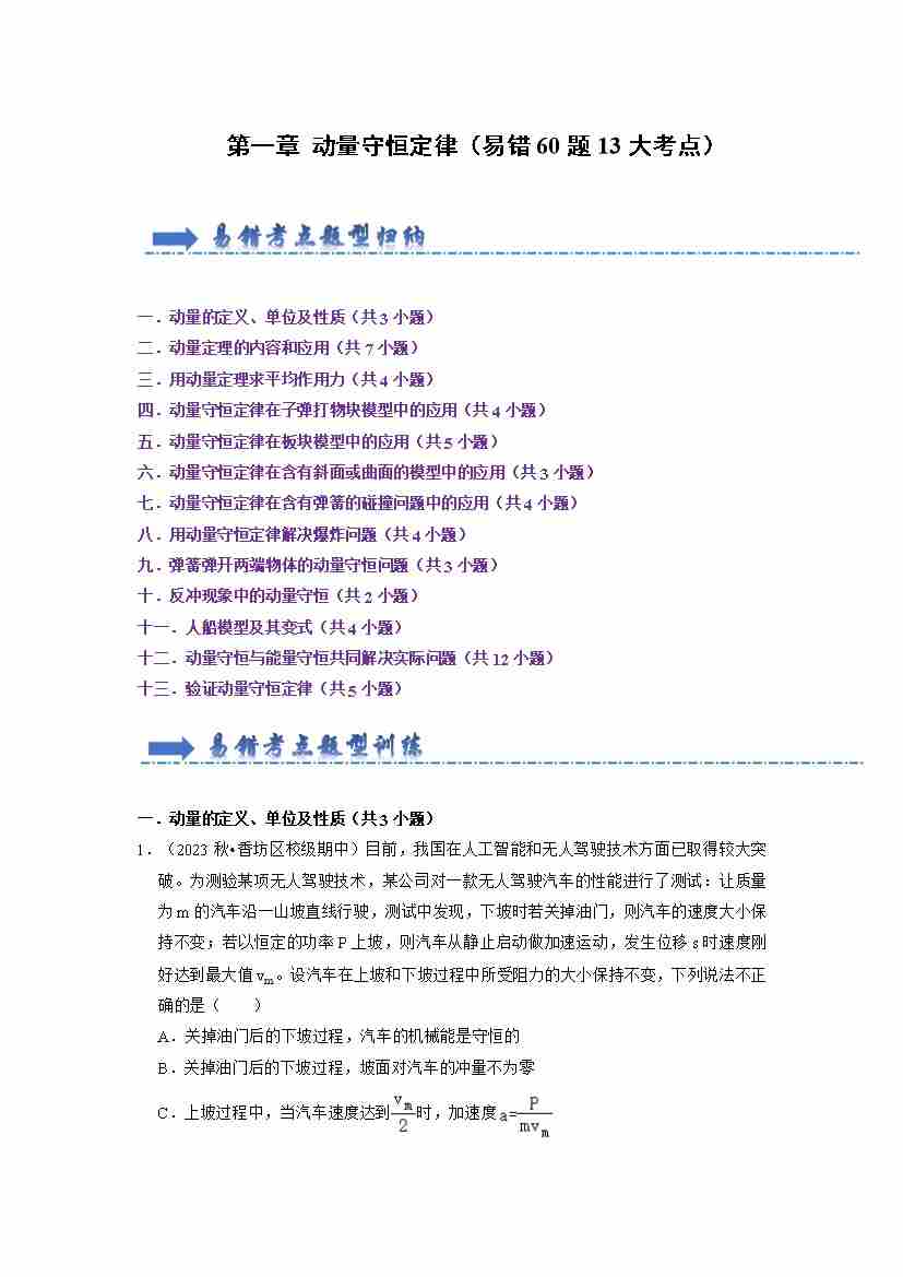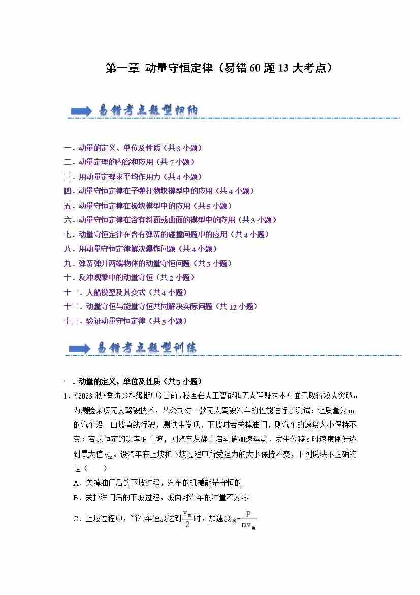 第1章 动量守恒定律(易错60题13大考点)(教师版)