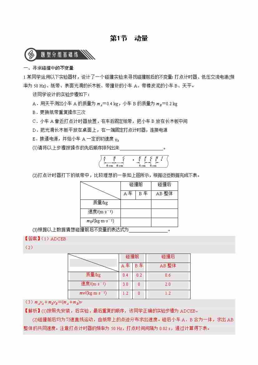 1.1 动量(分层作业 )(解析版)-(人教版2019选择性必修第一册)