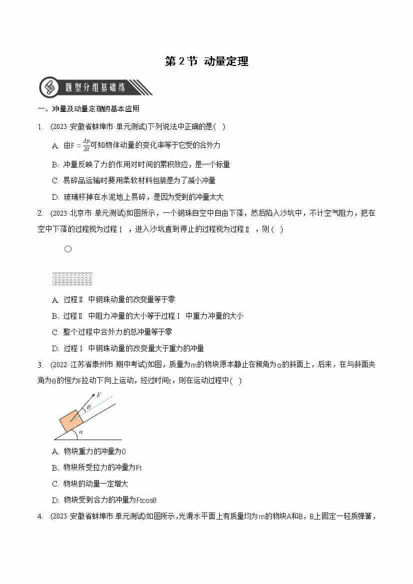 1.2 动量定理(分层作业 )(原卷版)(人教版2019选择性必修第一册)