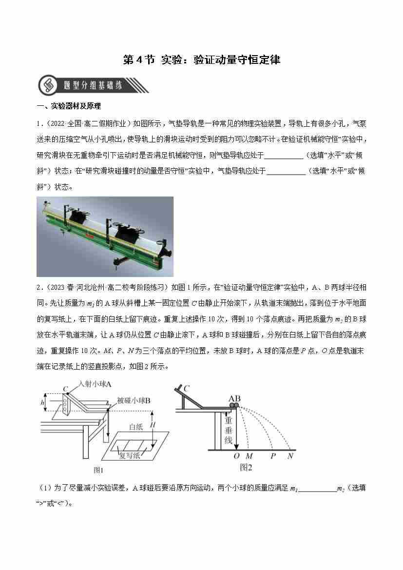 1.4 实验:验证动量守恒定律(分层作业 )(原卷版)(人教版2019选择性必修第一册)