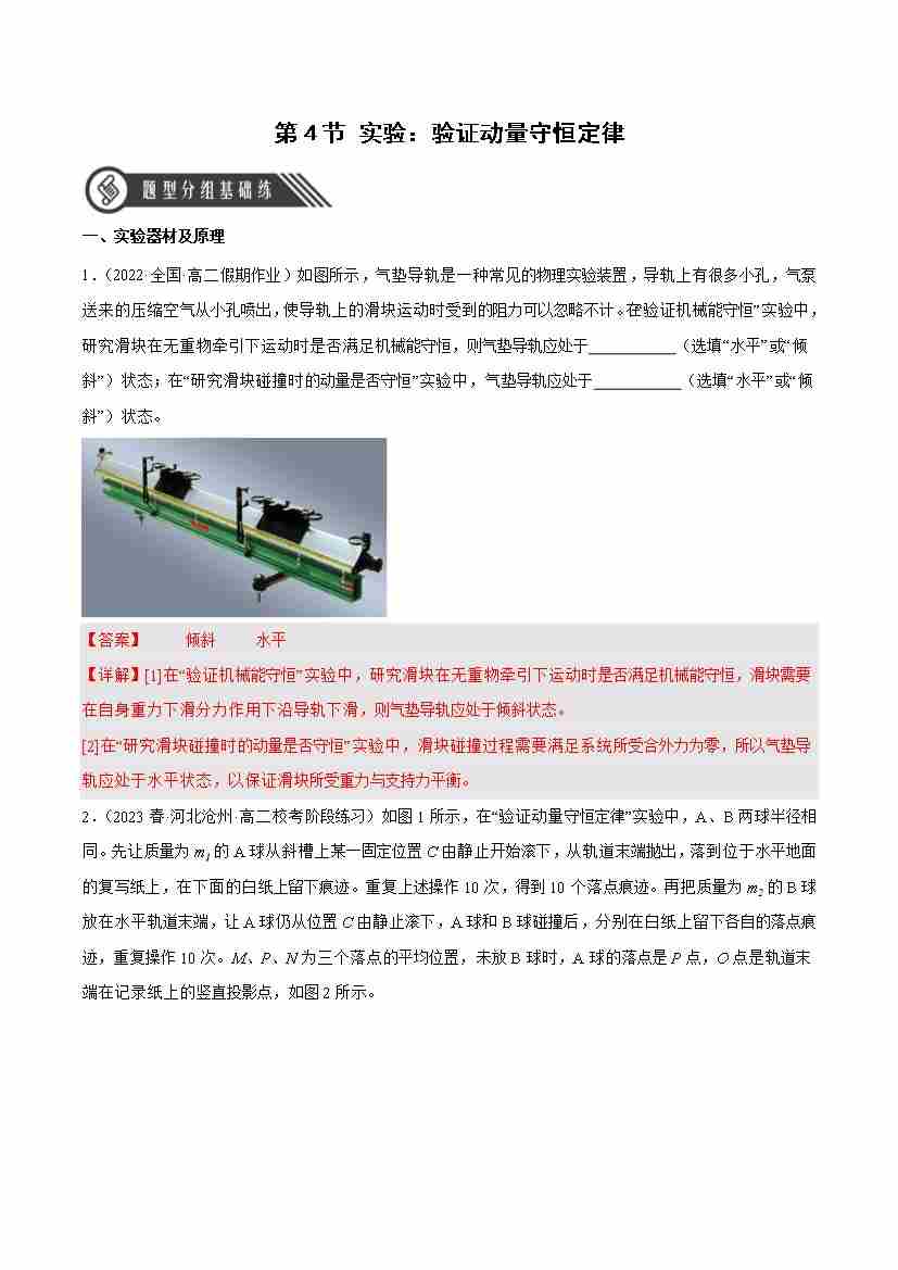 1.4 实验:验证动量守恒定律(分层作业 )(解析版)(人教版2019选择性必修第一册)