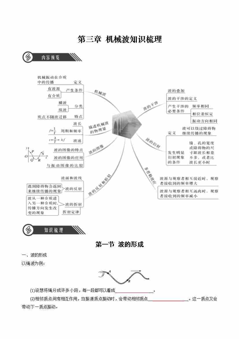 第三章 机械波(单元知识清单)(原卷版)-(人教版2019选择性必修第一册)