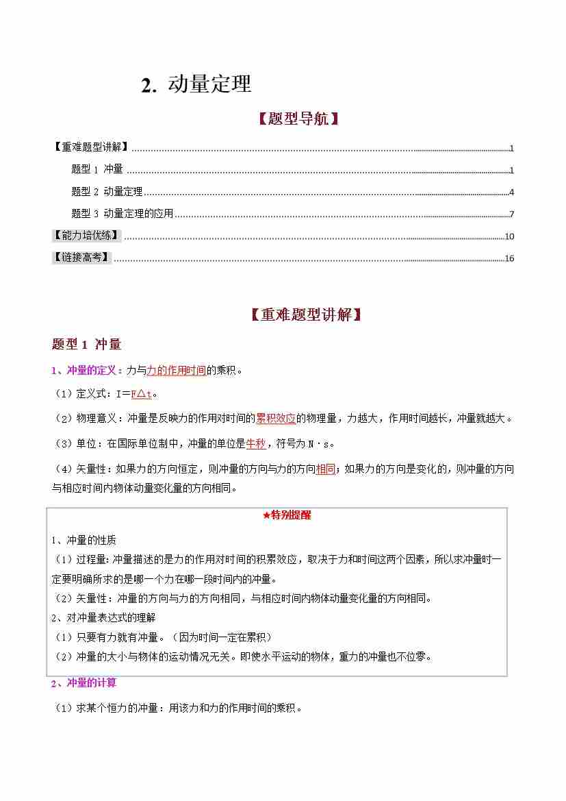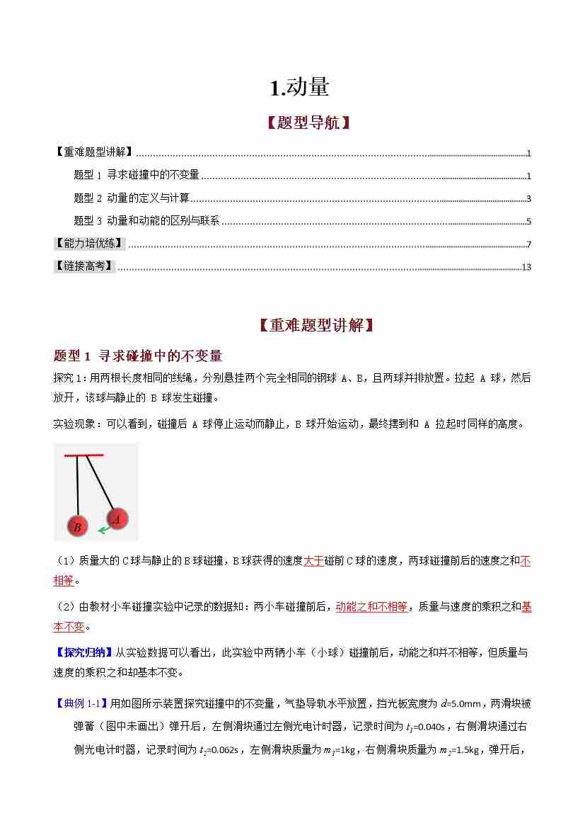 3. 动量守恒定律(高效培优讲义)(教师版)
