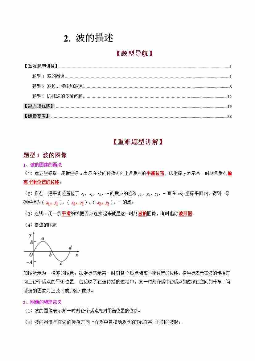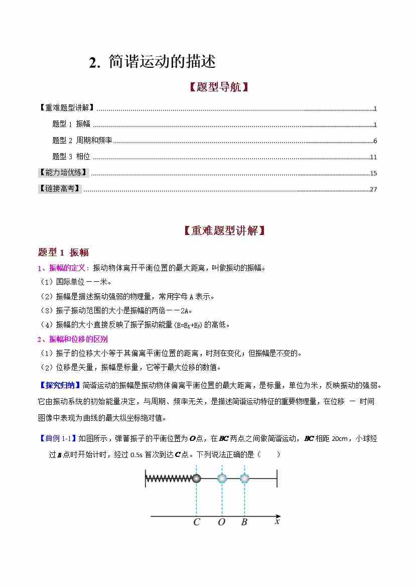 2. 简谐运动的描述(高效培优讲义)(学生版)