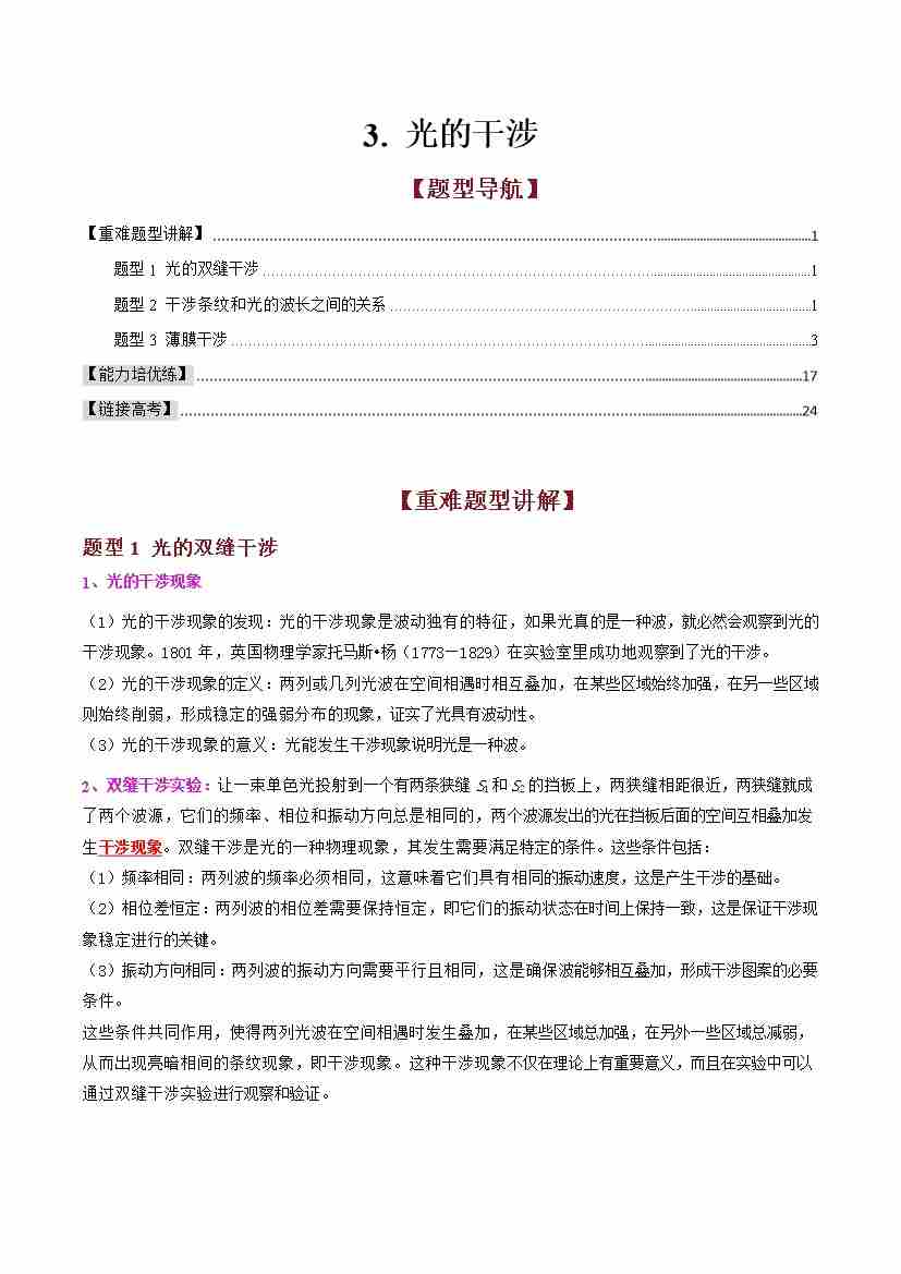 4. 实验:用双缝干涉测量光的波长(高效培优讲义)(教师版)