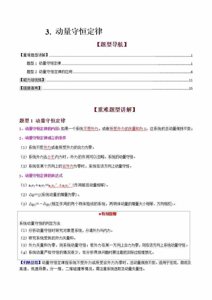 3. 动量守恒定律(高效培优讲义)(学生版)