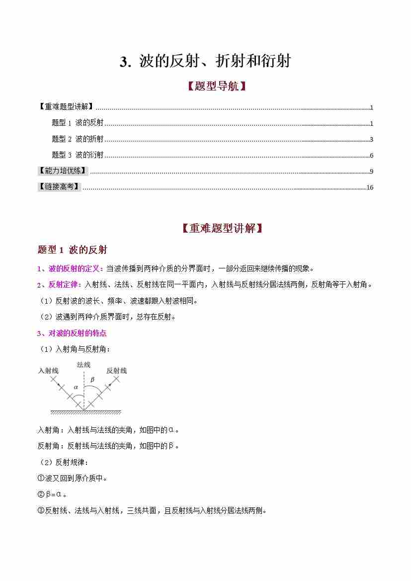 3. 波的反射、折射和衍射(高效培优讲义)(学生版)