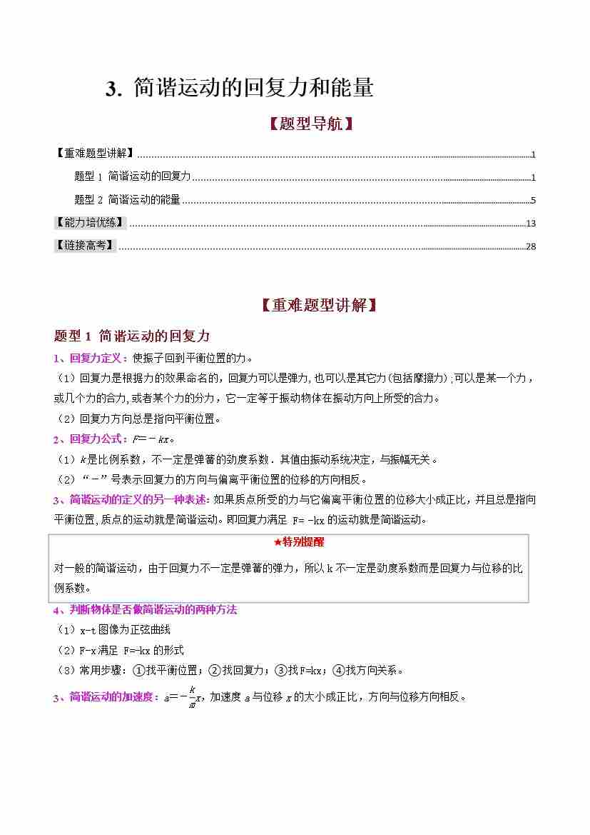 3. 简谐运动的回复力和能量(高效培优讲义)(学生版)