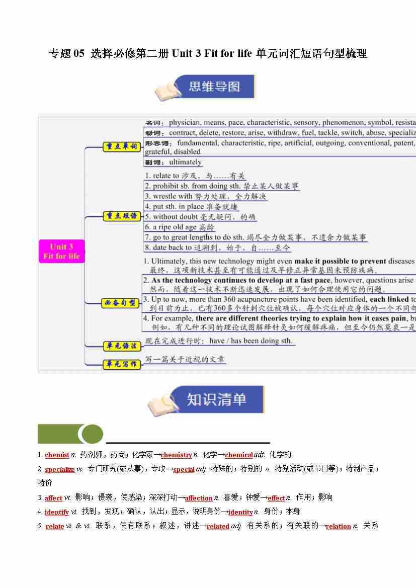 专题02 选择必修第一册Unit 3和Unit 4 单元词汇短语句型梳理(期末复习知识清单)(背诵版)