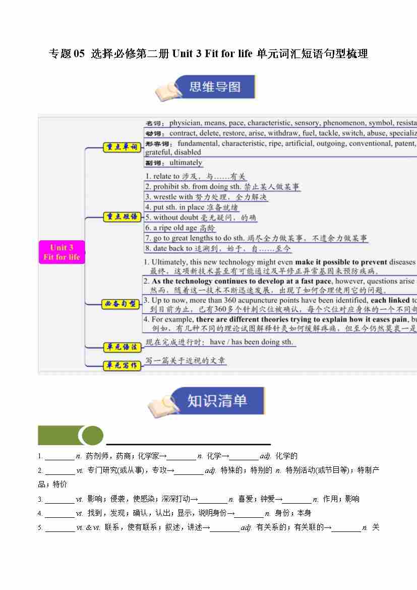 专题05 选择必修第二册Unit 3 单元词汇短语句型梳理(期末复习知识清单)(背诵版)