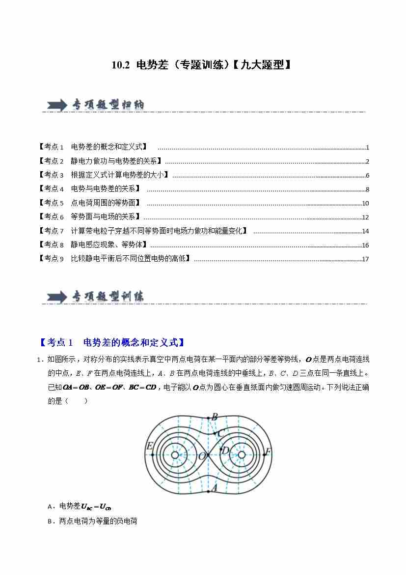 10.2 电势差(专题训练)(九大题型)(学生版)
