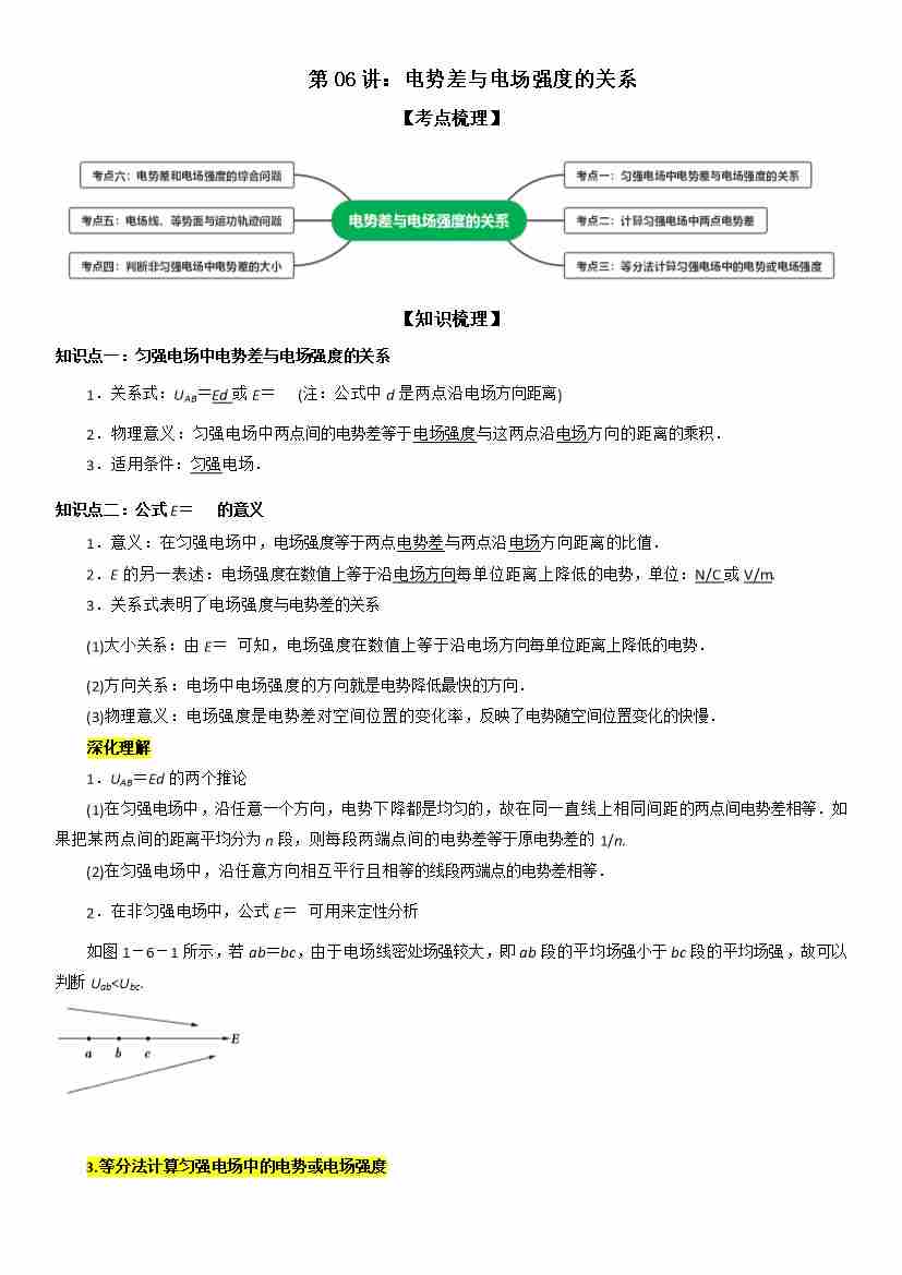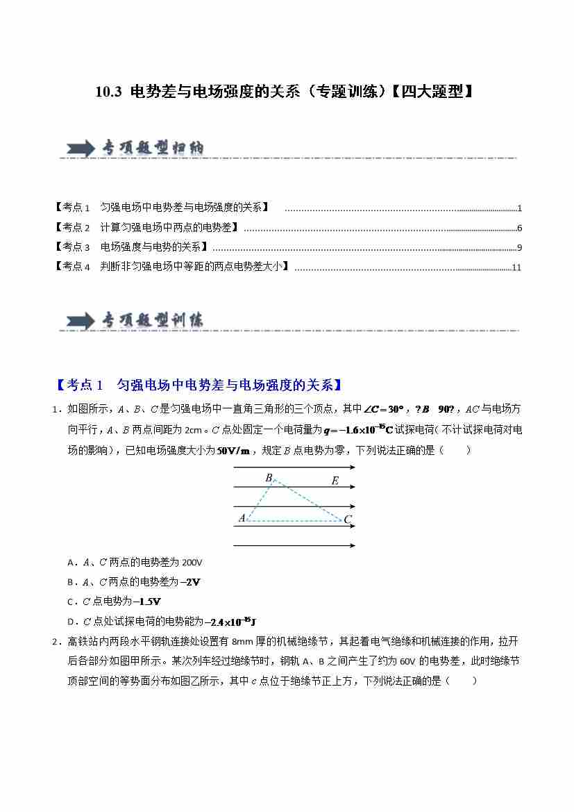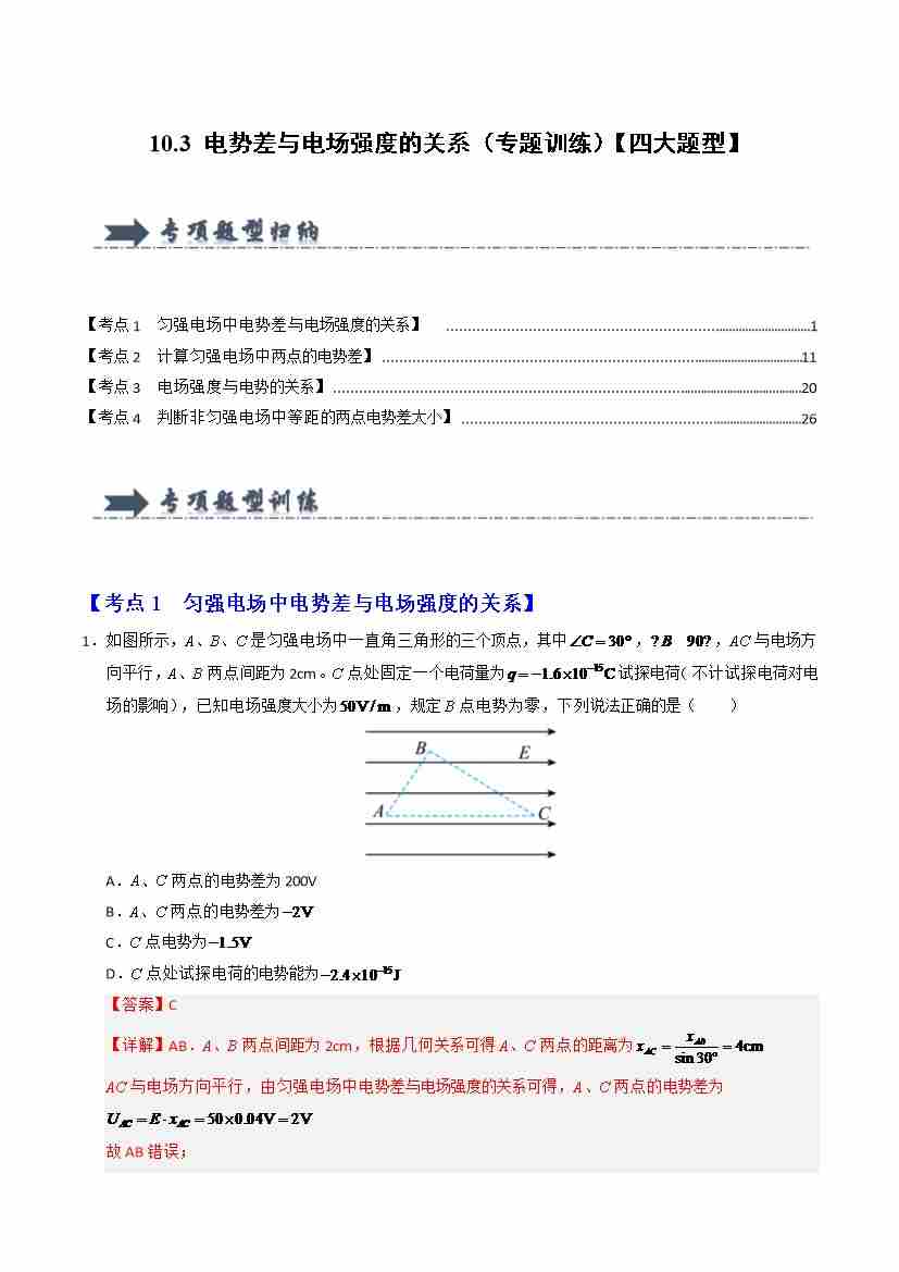 10.3 电势差与电场强度的关系(专题训练)(四大题型)(教师版)