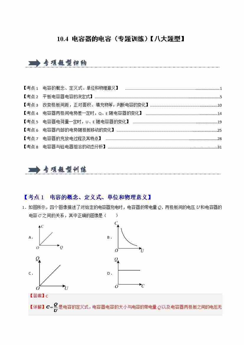 10.4 电容器的电容(专题训练)(八大题型)(教师版)