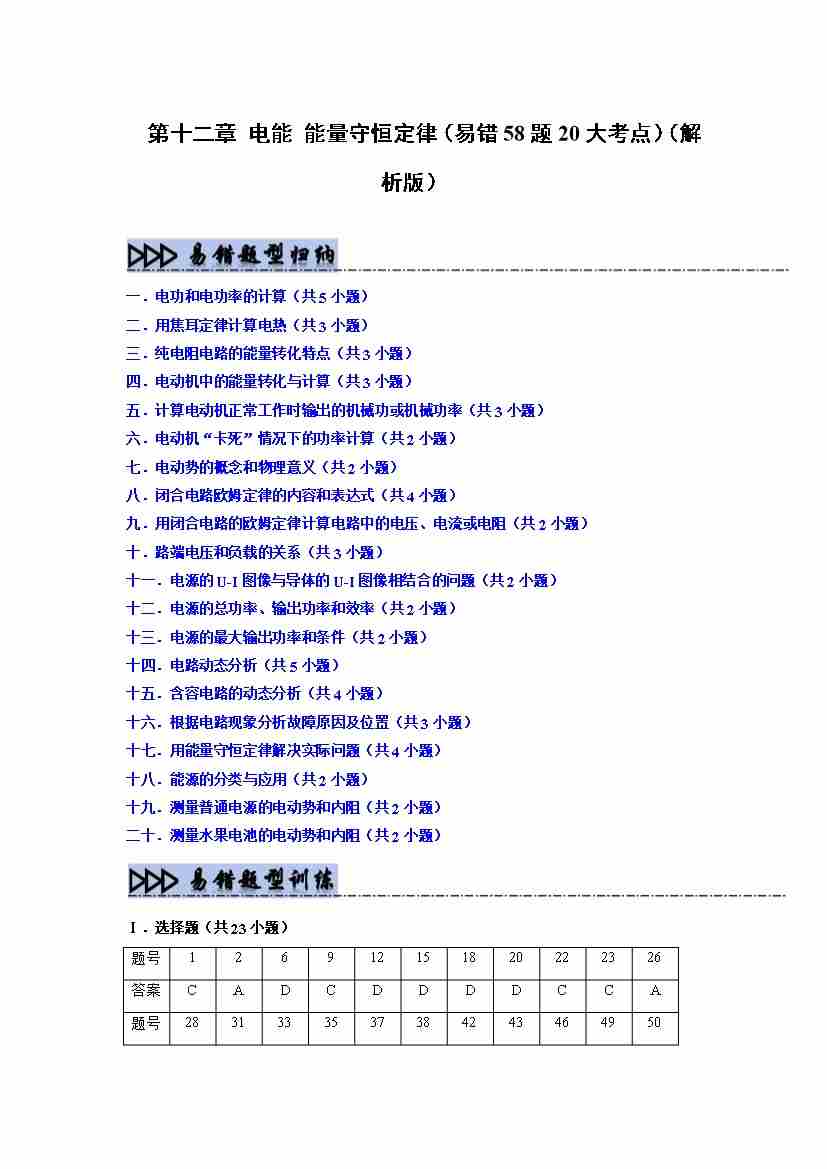 第12章 电能 能量守恒定律(易错58题20大考点)(教师版)