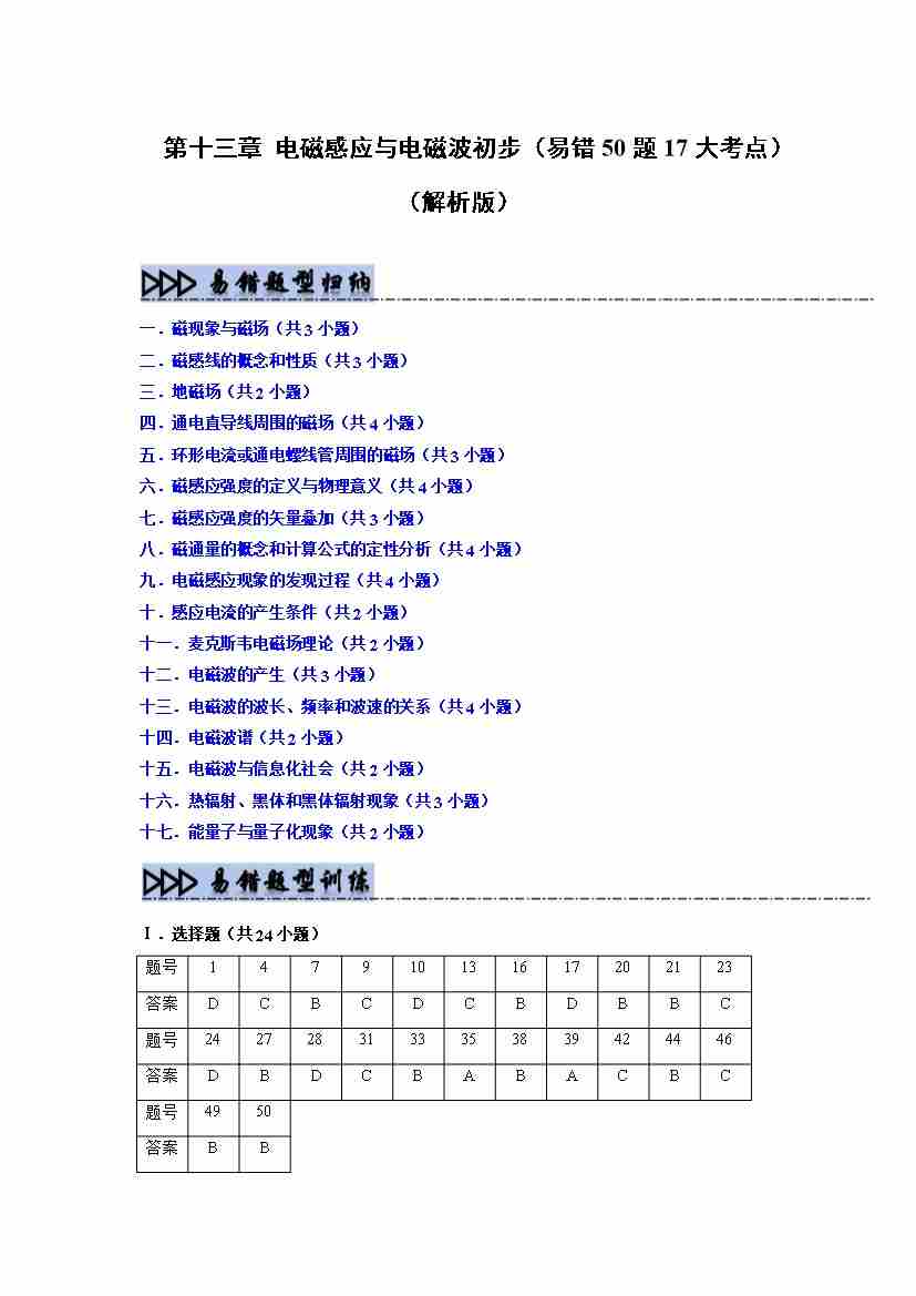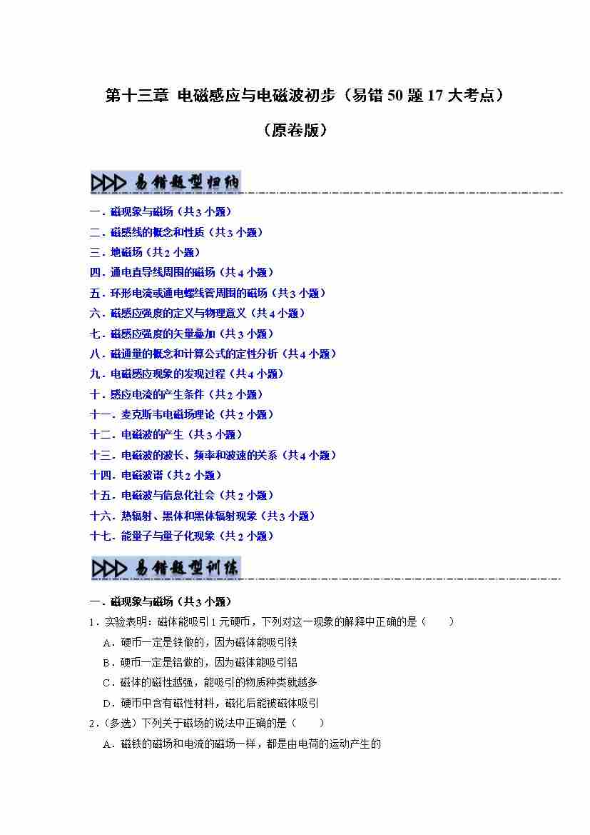 第13章 电磁感应与电磁波初步(易错50题17大考点)(学生版)