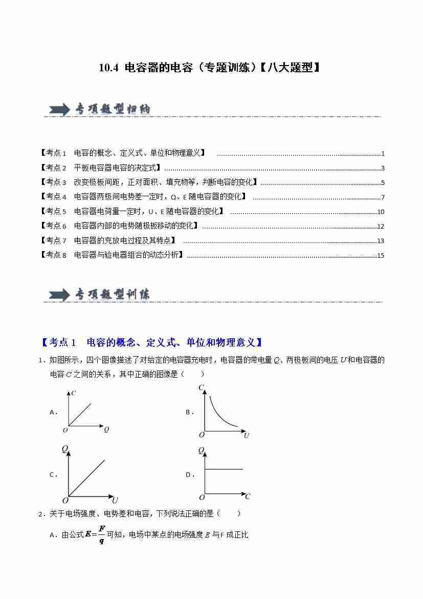 10.4 电容器的电容(专题训练)(八大题型)(学生版)