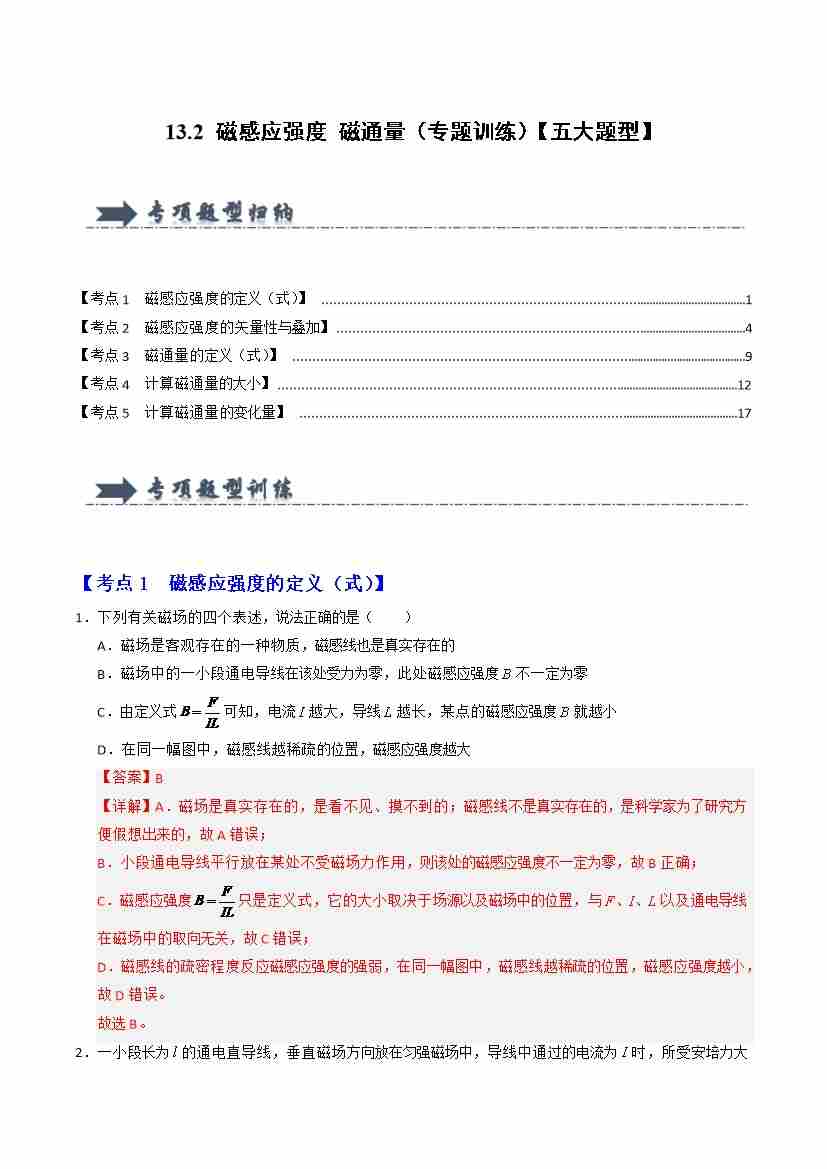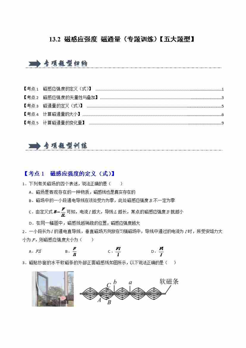 13.2 磁感应强度 磁通量(专题训练)(五大题型)(学生版)