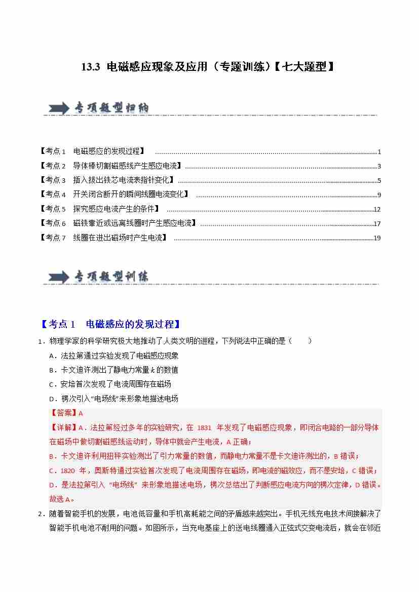 13.3 电磁感应现象及应用(专题训练)(七大题型)(教师版)