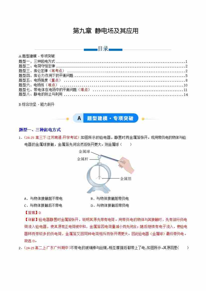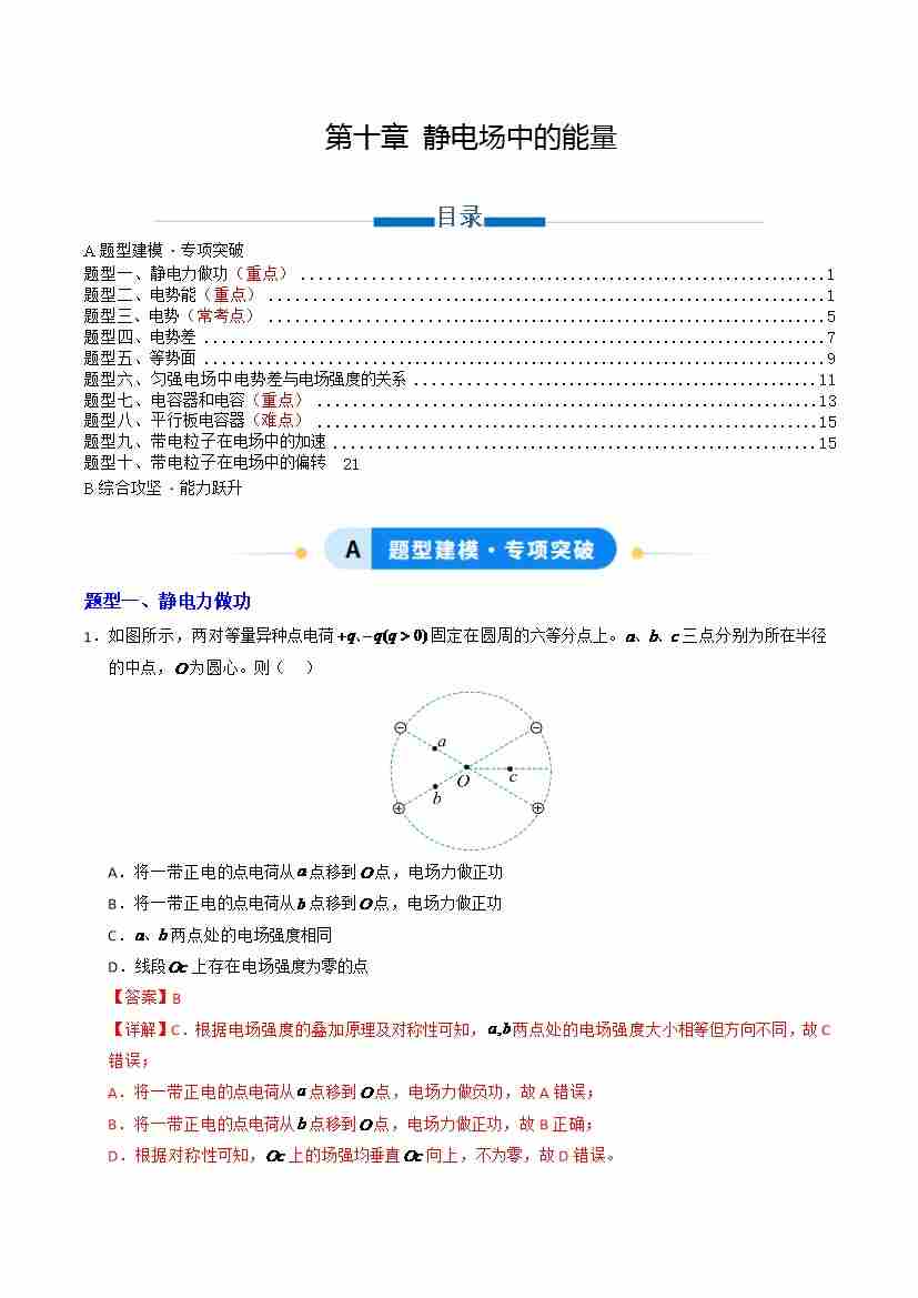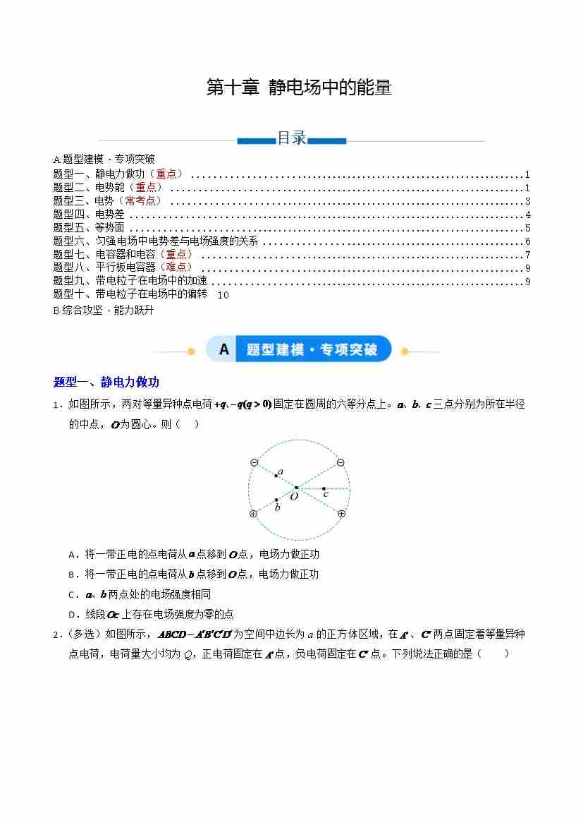 10.5 带电粒子在电场中的运动(专题训练)(八大题型)(教师版)