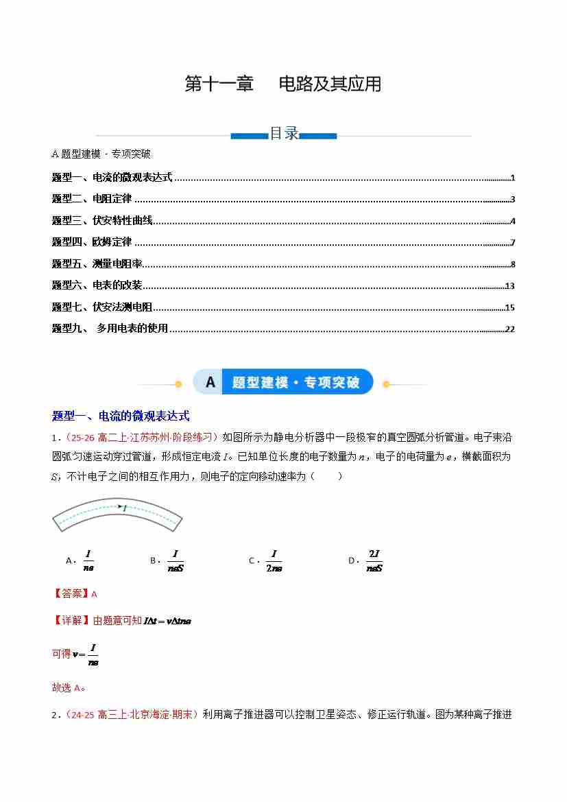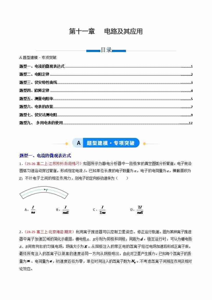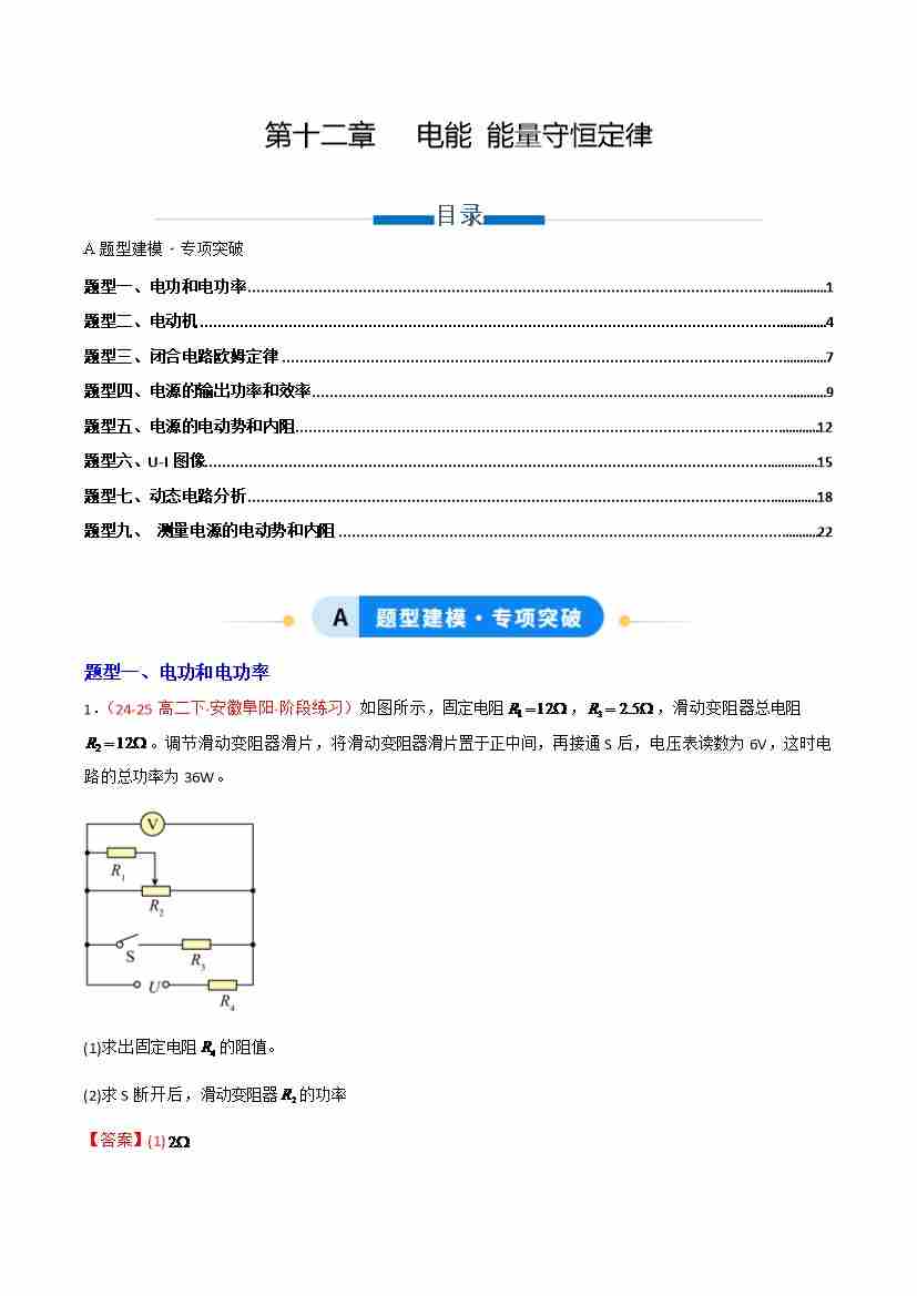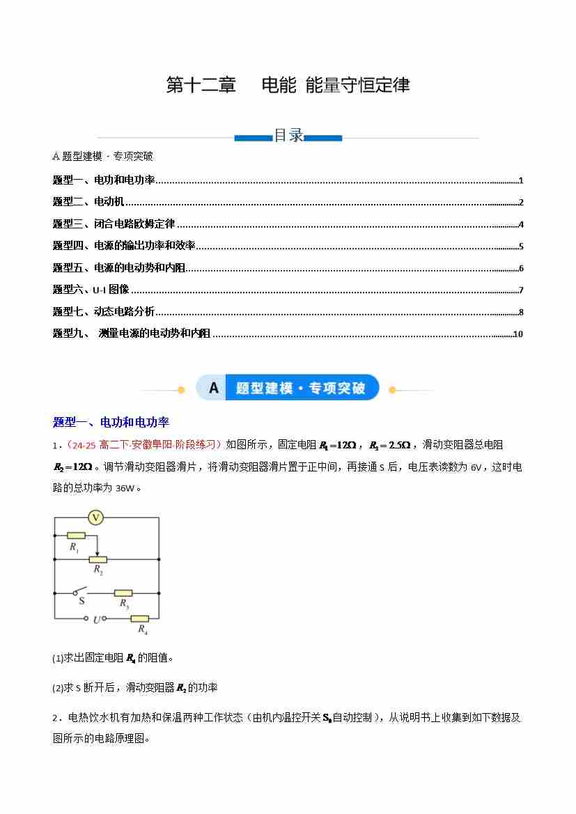 第十二章 电能 能量守恒定律(专项训练)(学生版)